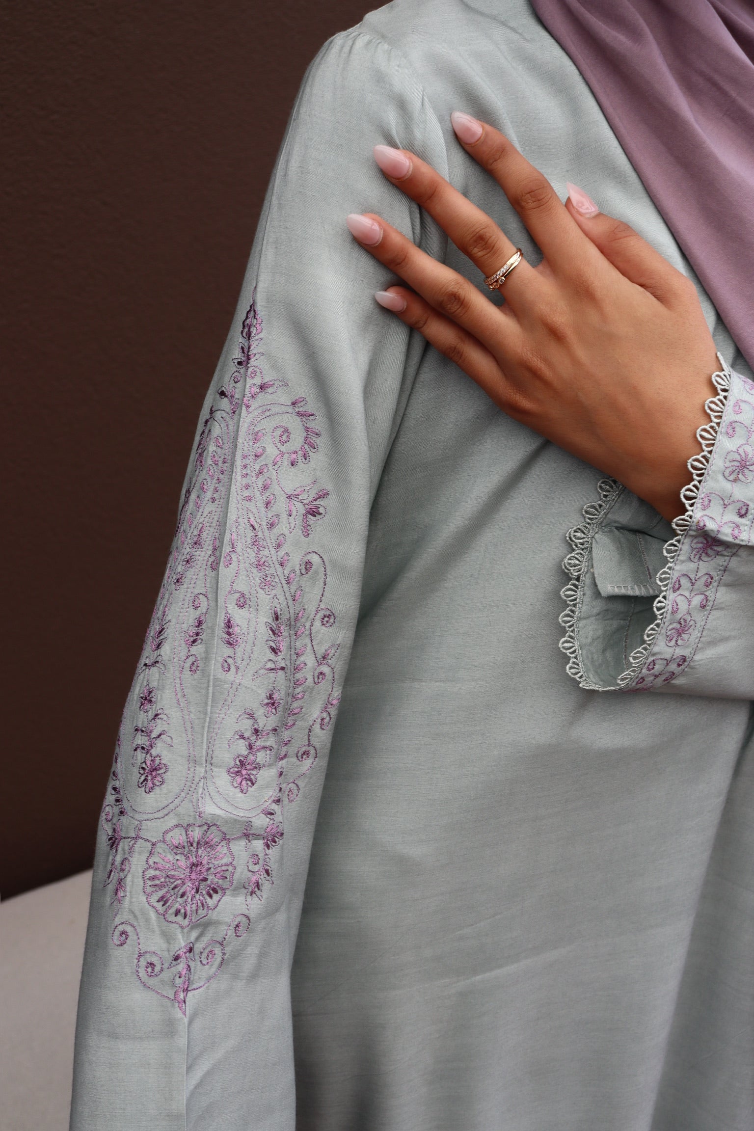 Discover modern modesty with the Serene Thread in Sage. This piece highlights the beauty of hand-guided threadwork, adding a unique character that catches the light beautifully. Designed in-house to ensure total exclusivity, the breathable cotton silk provides a luxe feel that is perfect for warm Australian nights.
